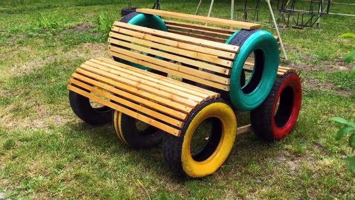 Чудесная лавочка из старых покрышек
