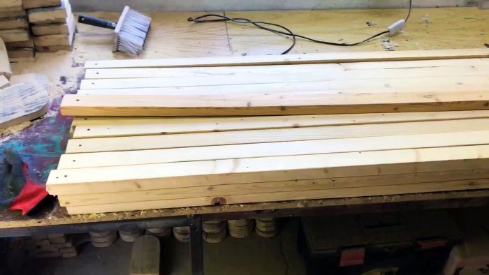 Лучше, чтобы он был не более 2 см. Когда все брусы будут прикручены, их можно обработать лаком, олифой или простой краской.