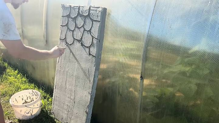 Покройте лаком по камню. После полной просушки выложите дорожку в саду.