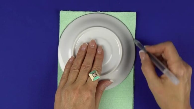 С помощью тарелки большего диаметра проведите еще одну выпуклую линию как показано на фото.