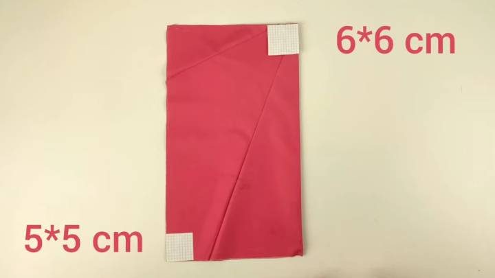 Теперь справа сверху вырежьте квадрат 6 см, а снизу слева — 5 см. Точно такую же заготовку сделайте и из обычной ткани (подкладочной).