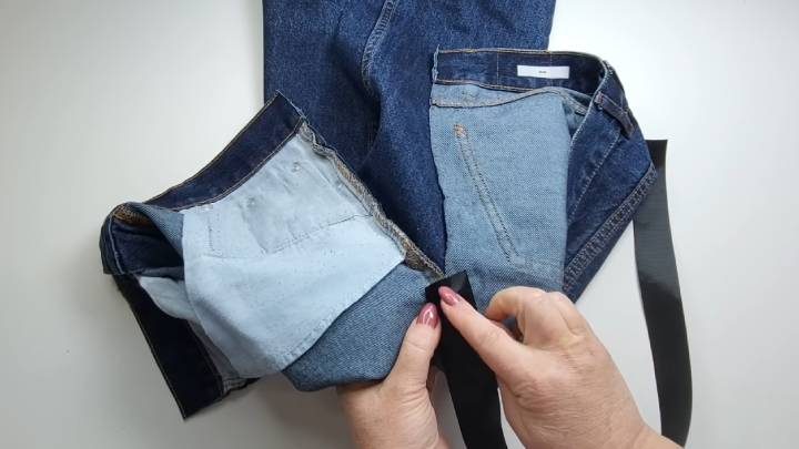 Ещё один способ увеличить джинсы в талии значительно — это заменить заводской пояс. Обрежьте его.
