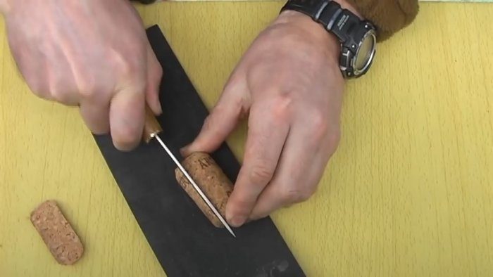 Не надо объяснять, насколько важен на кухне острый нож с удобной и нескользкой рукоятью. Также такой нож незаменим в походе, на рыбалке или охоте. Сделать такую рукоять для ножа, топорика, спиннинга или зимней удочки можно из пробок из-под шампанского или вина.