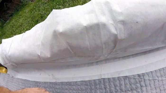 По окончанию работ остается только срезать выступающие бортики мембраны и геотекстиля.