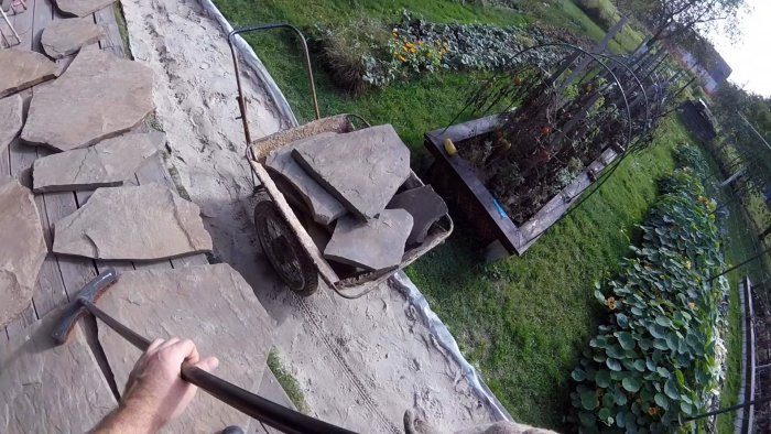 Процесс мощения садовой дорожки