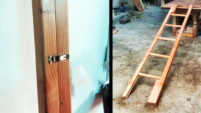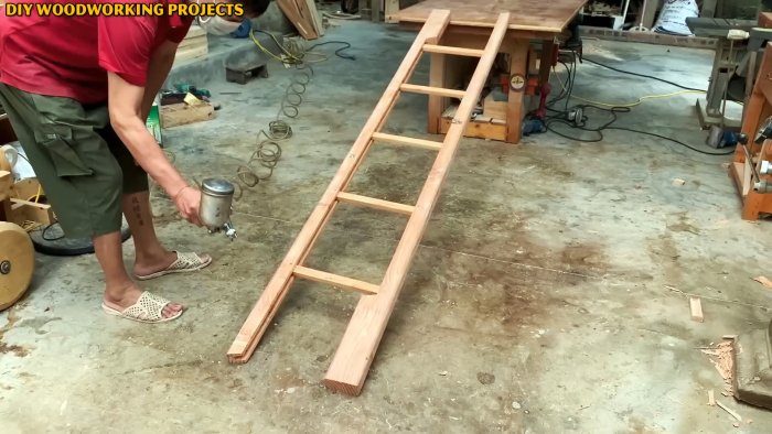 Процесс изготовления складной приставной лестницы из дерева для домашнего хозяйства