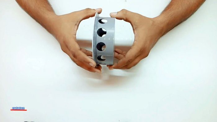 Последний можно сделать просто разогрев и выровняв ненужный отрезок большой трубы. Также нужно вырезать заглушку для большого кольца, и еще круглую накладку диаметром 125 мм.