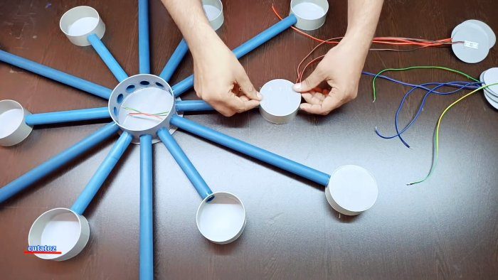 Современная светодиодная люстра из ПВХ трубы