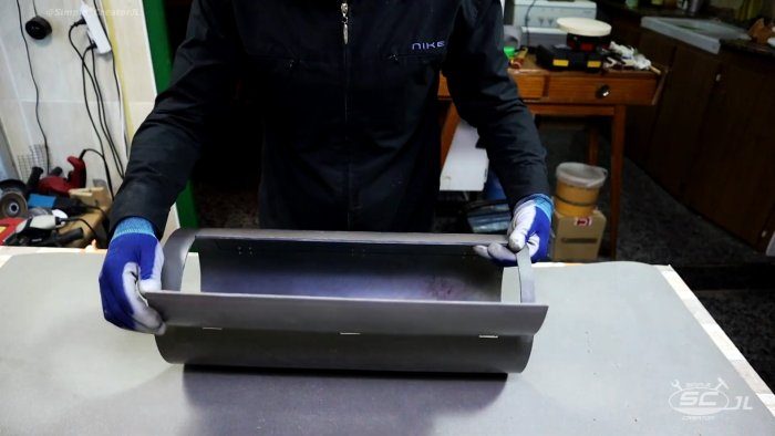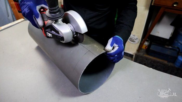Точно также поступаем и с двумя оставшимся кругами, предварительно установив их по торцам трубы. Возможные зазоры между внутренней стенкой трубы и торцевыми кругами заполняем шпаклевкой.
