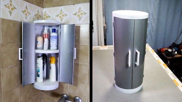 Угловой шкафчик в ванную комнату из ПВХ трубы