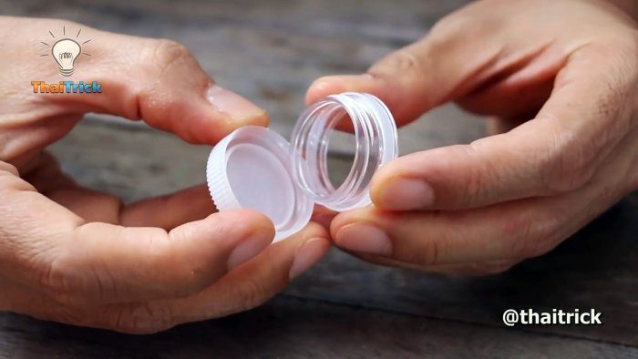 В дне бутылке и крышке сверлим отверстие под шланг.
