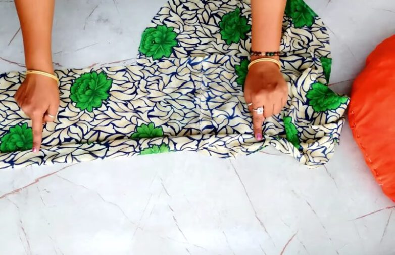 Сложите ткань вчетверо и вырежьте окружность диаметром 23 см.