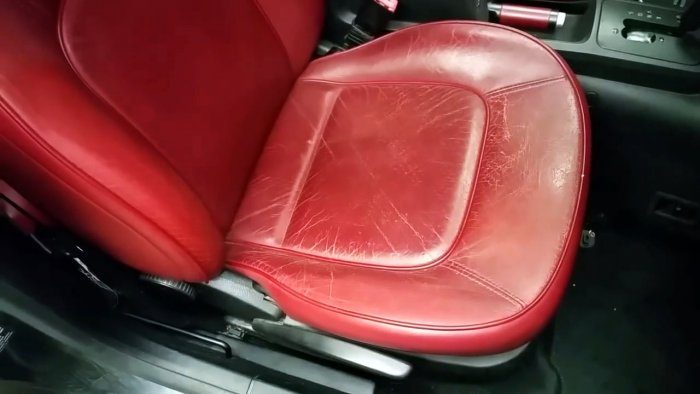 Кожаный салон нового автомобиля выглядит дорого и красиво, но с годами на сидениях появляются белые трещинки, что смотрится уже совсем неприглядно. Перетяжка новой кожей неоправданно затратное решение, так как проблему решает обычная краска.