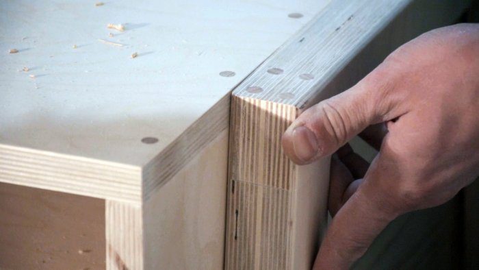 Верх столешницы я решил посадить на клей и нагели.