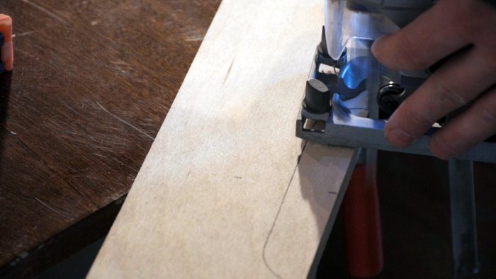 Сначала сделал черновой рез лобзиком, а после подготовил форму чтобы выровнять ручку копировальной фрезой.