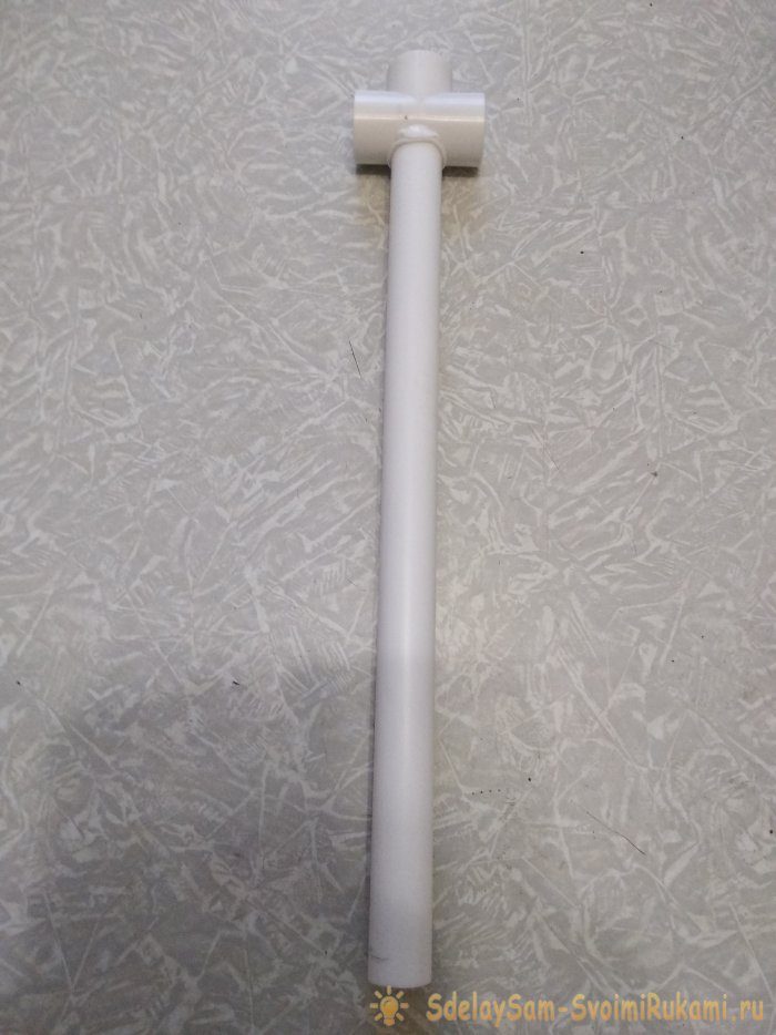 При покупке заготовок в наличии не было крестовин d20 и пришлось купить ещё один тройник, который пришлось доработать: просверлить ступенчатым сверлом d18 с «досверливанием» на половину d20 с противоположной стороны центрального выхода.