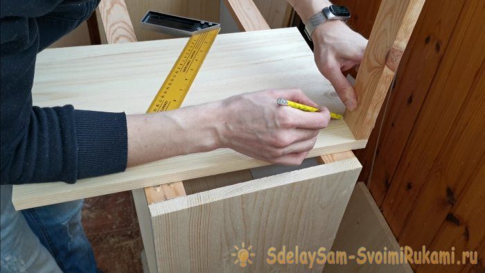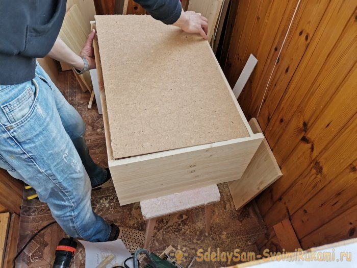 Отрезал 2 бруска и закрепил их вверху ящика.