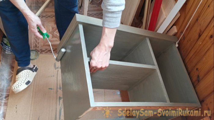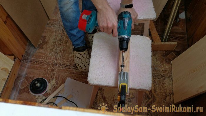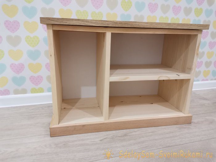Что бы закрыть ножки тумбочки, я сделал декоративное обрамление из рифленых реек.