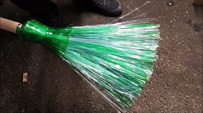 Накопив 15-20 пластиковых бутылок можно сделать самодельную удобную метлу для уборки мастерской или двора. Благодаря жесткости применяемого сырья она является практически вечной, не обламывается как аналоги из веток, и не боится воды.
