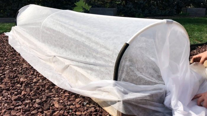 Вместо ненадежной полиэтиленовой пленки лучше использовать «дышащий», не намокающий и прочный спанбонд. Но он намного дороже полиэтилена, который всегда можно заменить.