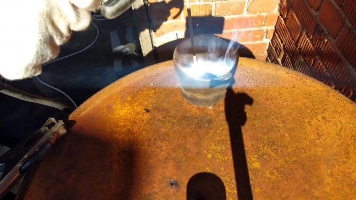 На заливную горловину трубы сверху приваривается переходник. Шов накладывается с внутренней стороны.