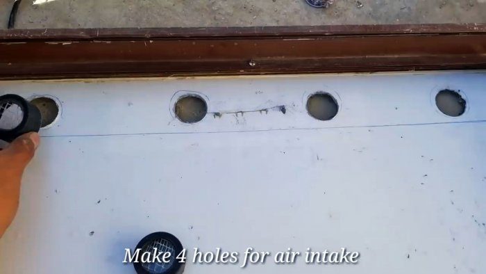 С противоположной стороны от вентилятора в задней стенке корпуса коллектора сверлятся окна забора свежего воздуха. Чтобы через них не проникали насекомые, следует сверху поставить москитную сетку или специальные вентиляционные решетки.