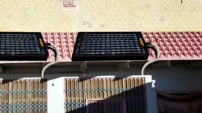 Сам вентилятор можно напрямую запитать от солнечной панели. В таком случае он будет включаться только днем, когда есть солнце, а значит воздух в коллекторе теплый. Использование панели в связке с коллектором делают отопление полностью бесплатным. Также можно подключить улитку просто к сети через реле времени. В таком случае она будет сама включаться утром и выключаться вечером. Самодельный коллектор в яркий день способен подавать в помещение воздух прогретый до + 60 градусов Цельсия, что очень неплохо.
