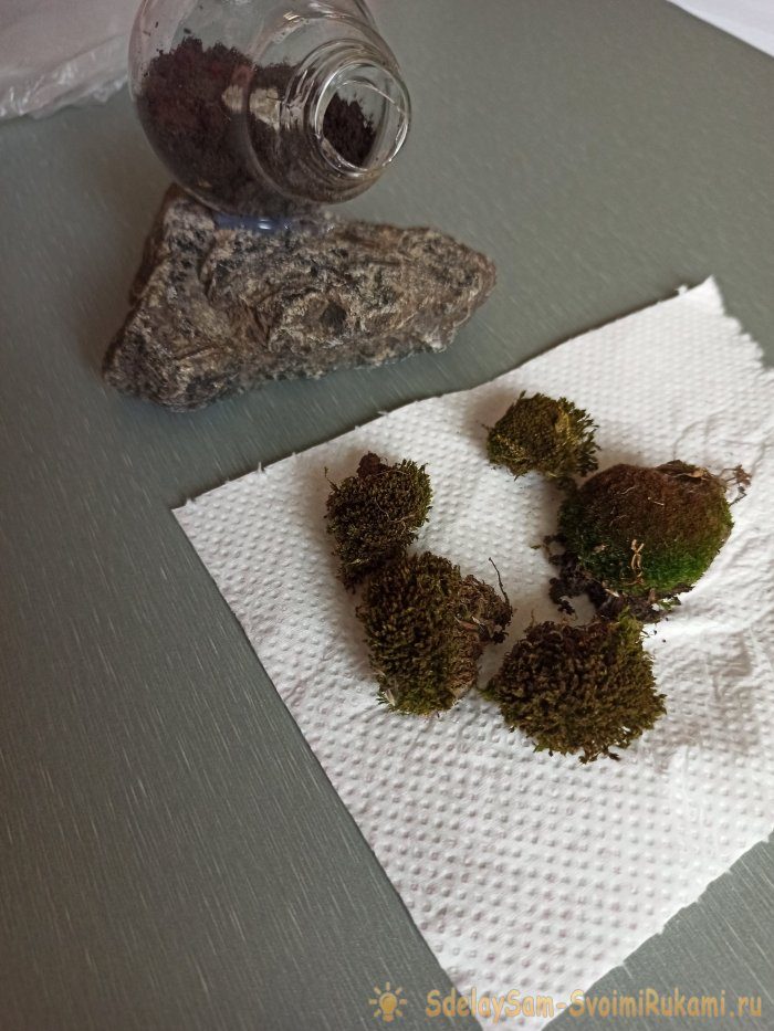 Наконец можно приступить к выкладыванию мха и камушков.