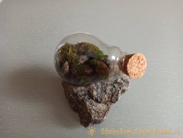 Оригинальный мини-террариум в лампочке готов!