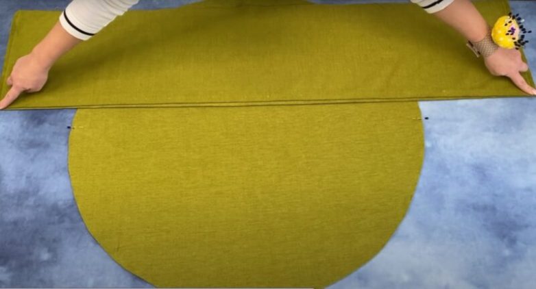 Срежьте ткань по намеченным линиям. В итоге получатся две одинаковые окружности диаметром 80 см.