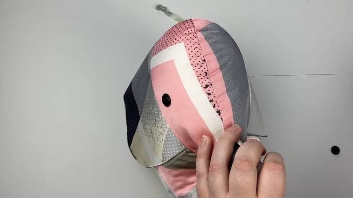 Каждую деталь укрепите клеевой паутинкой, проутюжив их. Обрежьте лишнее. Соедините детали у края в следующем порядке: тело, ухо, хобот. Проложите строчку.
