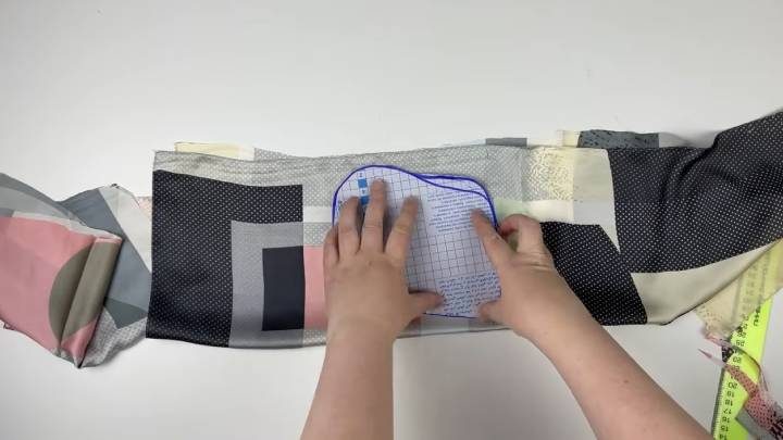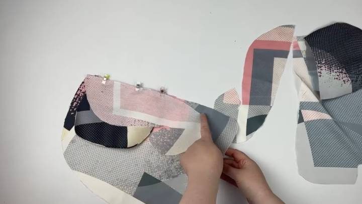 Сколите 2 полотна. Теперь садитесь за машинку и проложите строчку по узору платка, чтобы крепко соединить детали между собой.