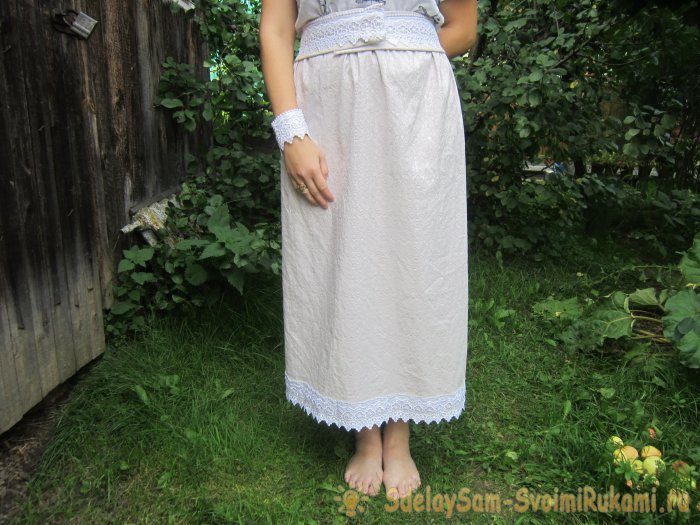 10. При желании украшаем низ или верх юбки кружевом, шьем пояс или подбираем подходящий.