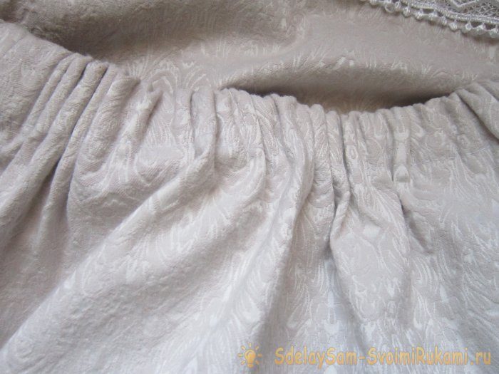 3. Низ юбки подгибаем на один или два сантиметра. Приметываем.