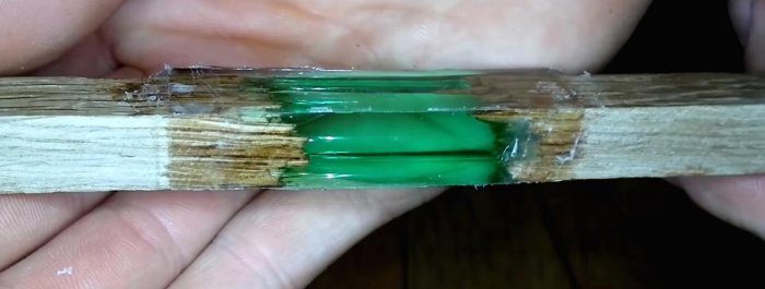 Оставляем затвердевать смолу на время указанное в её инструкции к применению.