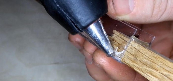 Отклеиваем плексиглас. Чтобы он лучше отходил, подогреваем его стороны ручной газовой зажигалкой.
