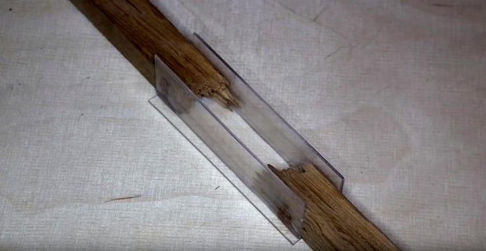Зажимаем рейку в тиски и ломаем молотком на две части. Это нужно для того, что бы создать интересный рельеф на гранях.
