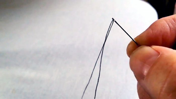 Этот же метод часто используют опытные швеи, так как здесь не нужно ничего смачивать, тратить лишнее время на поиск специальных приспособлений для продевания нитки. Да и сам способ вполне можно назвать быстрым, если сравнивать его с классическим, где основное время тратится на попытки прицеливания и промахи.