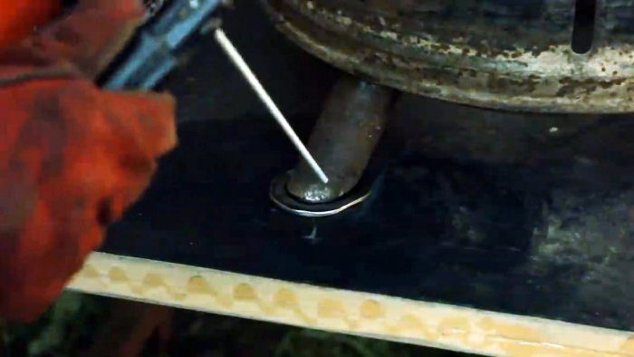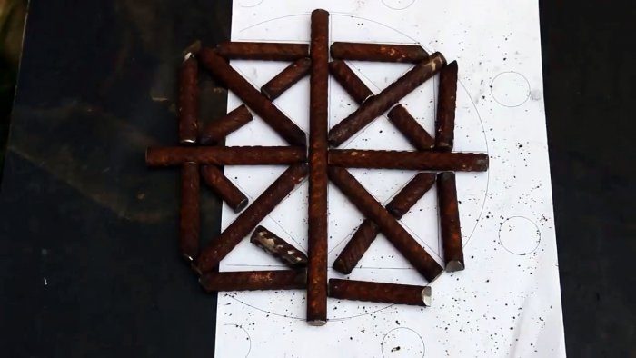 Центральное отверстие на дне чаши оснащается колосниками. Для этого следует сварить несъемную решетку из арматуры. Сквозь нее будет осыпаться пепел, что облегчит чистку. Также через решетку сможет поступать воздух для лучшего прогорания очага.