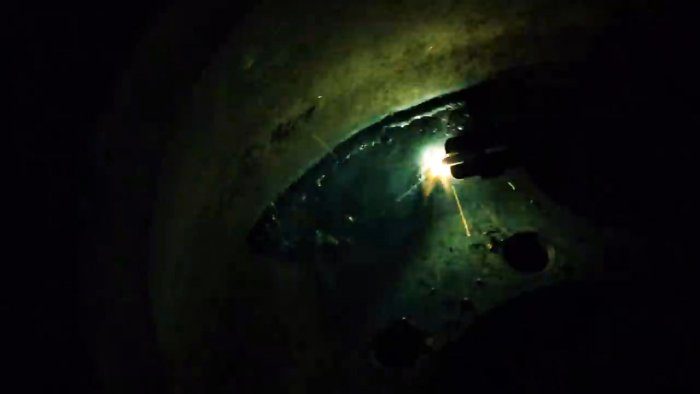 Далее нужно заглушить дно чаши, заварив в нем крупные боковые вырезы, кроме монтажных отверстий и центрального окна под ступицу. Для этого делается шаблон заплаток из бумаги. По нему они вырезаются из выпрямленной трубы или толстой листовой стали, после чего ввариваются.