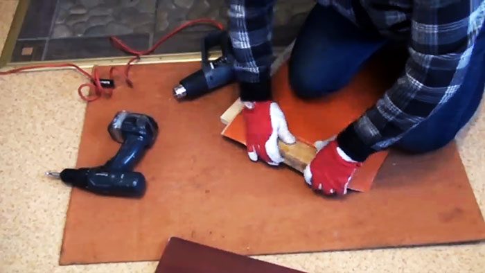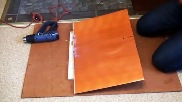 Для этого размягченный материал можно сверху придавливать до остывания куском фанеры, дверцей или полкой от старой мебели. При обдуве феном нельзя задерживаться на одном месте, поскольку на перегретом пластике появятся пузырьки и выжженные участки.
