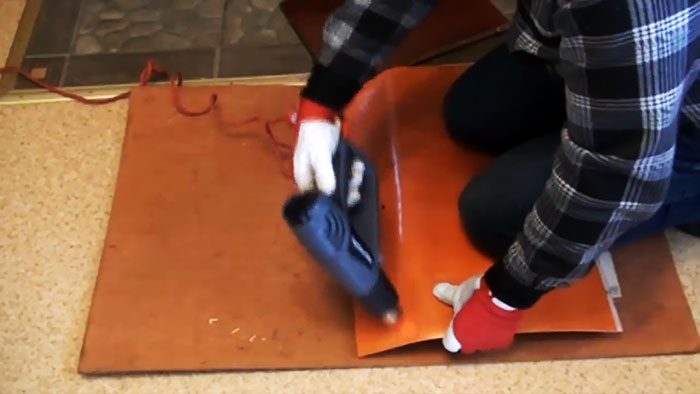 Далее нужно включить монтажный фен на максимум и равномерно прогреть заготовку изнутри. Чтобы не обжечься, работать лучше в двух парах плотных перчаток.