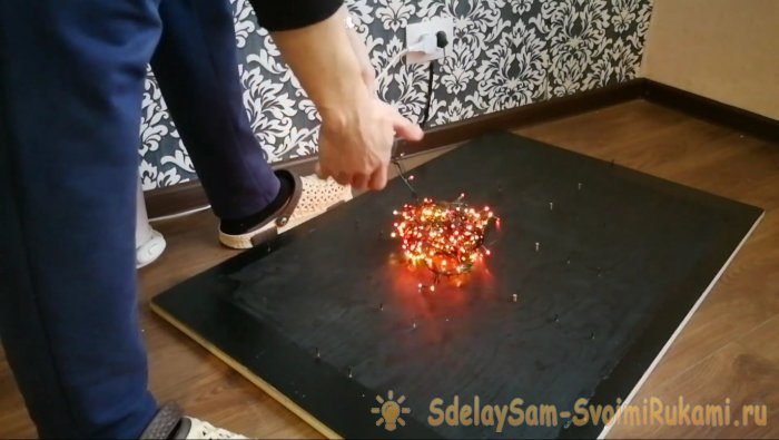 Теперь беру гирлянду. Проверяю на работоспособность.