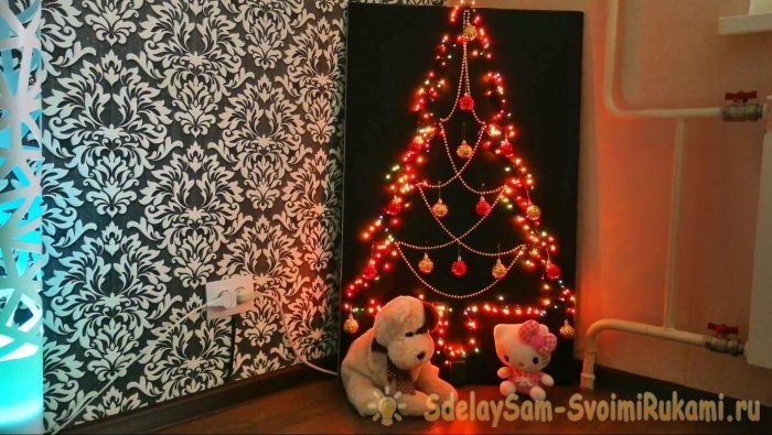 Развешиваю гирлянду на елку. Осталось только повесить елочные игрушки.
