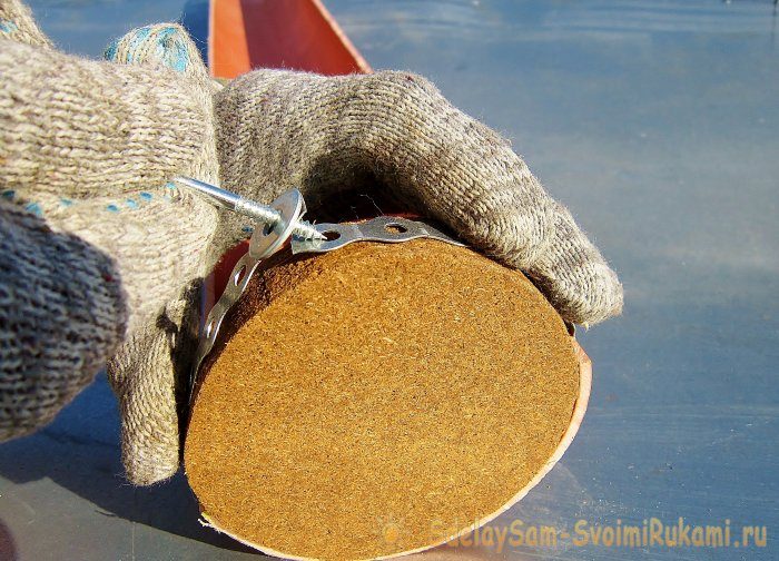 3. Заведите крепеж в три отверстия. Да, здесь требуется смекалка. Но поймите одно. Если вы используете такой же материал, что и я. Тогда вам покажется, что края металлической ленты не сходятся. Но это не так. Приложите усилия, зацепите отверстия резьбой анкера и закрутите. Помните, ровно 23 отверстия.