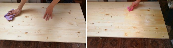 Обеспыливаю поверхность и наношу масло. Покрывал маслом в 2 слоя.