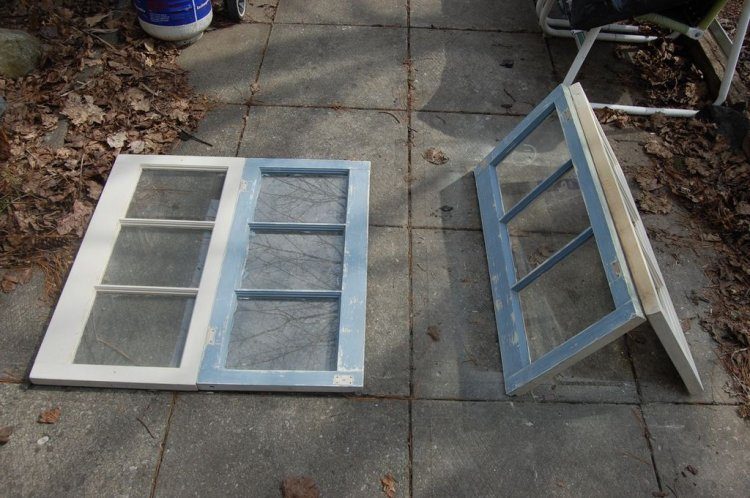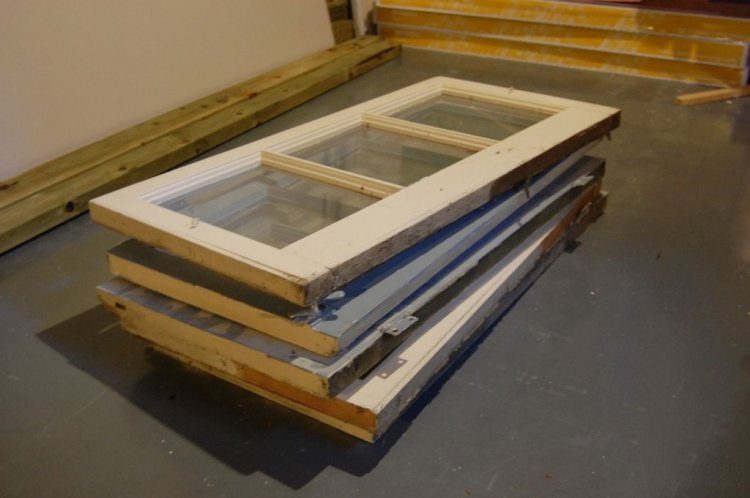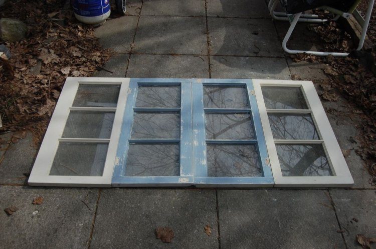 Две, три или четыре старых оконных рамы со стеклами.