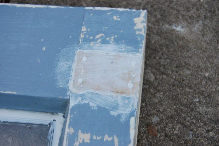 Переходи к окнам. Все забоины, трещины необходимо замазать грунтовкой по дереву. И только после этого переходить к их покраске.