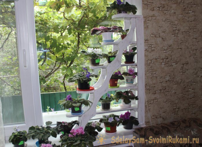 Ни для кого не секрет, что практически все цветы являются светолюбивыми. Вот почему зачастую их размещают на подоконниках. Но чтобы разместить на подоконнике большое количество горшков с растениями, лучше всего использовать специальные подставочки. Сегодня огромным спросом пользуются жардиньерки, изготовленные из металла. Но такие конструкции весьма тяжелые и дорогие. Намного проще самостоятельно изготовить специальную полочку для цветов из дерева. Во-первых, вы сможете сделать полку именно тех размеров, которые вам необходимы. Во-вторых, себестоимость конструкции будет достаточно низкой. В-третьих, такие полки выглядят весьма стильно и вписываются практически в любой интерьер.