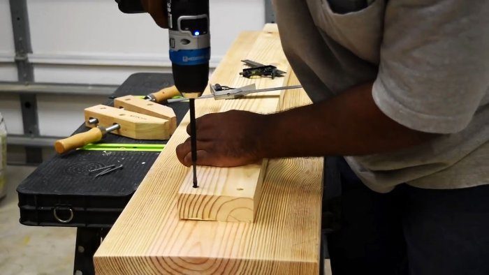 Начиная со второй, и до последней закрепляем поперечные элементы струбцинами, и прикручиваем снизу шурупами.